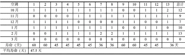 另外,100級(jí)潔凈間的過濾器級(jí)別的級(jí)差比較大,例如:粗中效和高效之間相差10級(jí),致使前一級(jí)過濾器不能很好地保護(hù)高效過濾器,導(dǎo)致高效過濾器壓差經(jīng)常超標(biāo),更換比較頻繁。1997年10月到1998年3月間前工序空調(diào)系統(tǒng)13臺(tái)循環(huán)風(fēng)機(jī)更換的高效過濾器數(shù)量見表3。 表3過濾器更換數(shù)量統(tǒng)計(jì)